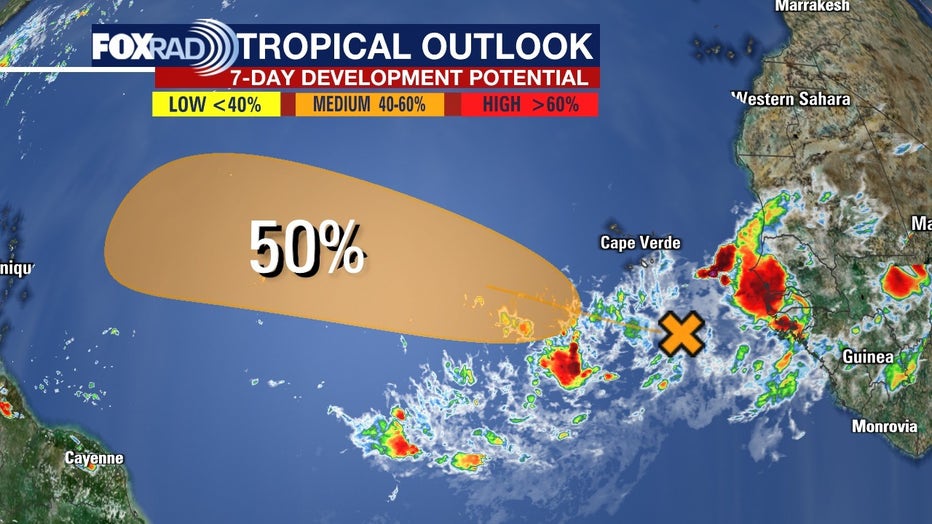 The only short-term area of possible development is thousands of miles from here in the eastern Atlantic Ocean. A tropical wave near the Cape Verde Islands could become a tropical storm later this week and possibly even a hurricane over the next week or so. It is very far away and is not likely to affect the Gulf, but will be something to watch for the East Coast of the US.