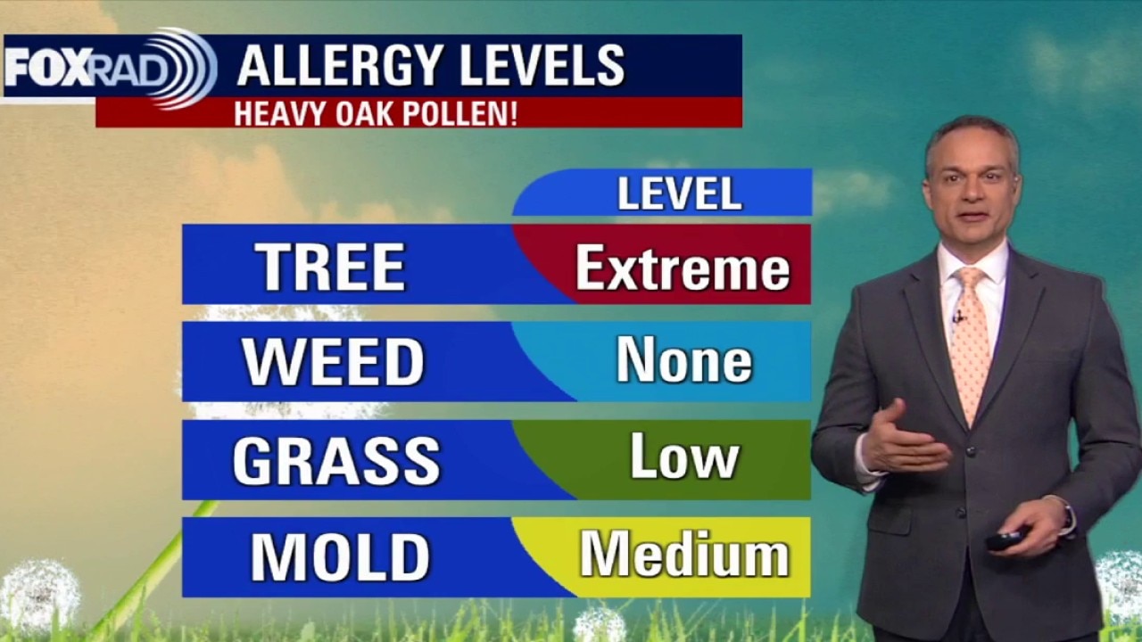 It's a little cooler Saturday after a weak front has moved through Southeast Texas causing drier air. Tree allergy levels are also at an extreme level.
