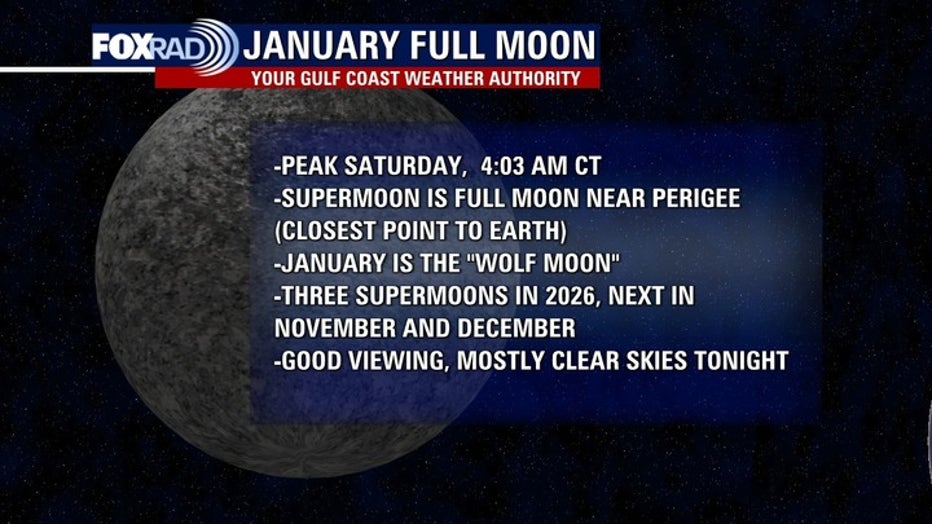 Mostly clear skies across southeast Texas this evening should allow for great viewing of the year's first supermoon.