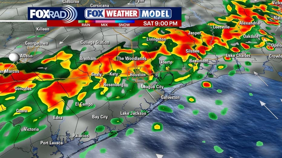 Saturday brings the highest concern for more widespread storms. Some could be strong with heavy rain, gusty winds, and even localized flooding, especially later in the day and possibly overnight into very early Sunday.
