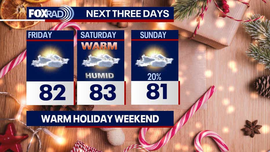 Overall, holiday travel and outdoor plans look weather-friendly with no major disruptions, but we'll be closer to Christmas t-shirts rather than sweaters.