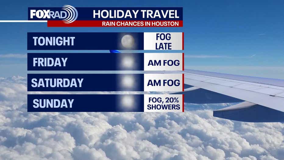 HOUSTON - Headed out for Christmas dinner tonight? Expect warm conditions similar to this morning and afternoon. More thick fog is expected later on tonight and as you wake up Friday morning.