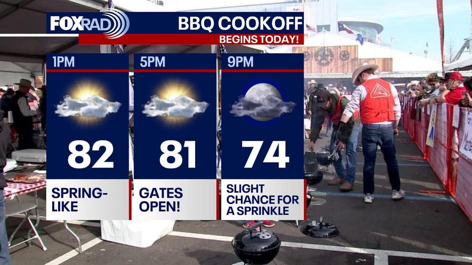 HOUSTON - Today is the kickoff of the Houston rodeo World’s Championship Bar-B-Que Contest and the weather looks pleasant with highs reaching the mid-80s.