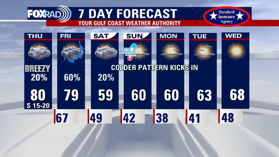 Behind the front, temperatures will fall sharply. Highs this weekend drop back into the 50s and low 60s, with noticeably colder mornings and a return to a more wintry January feel.