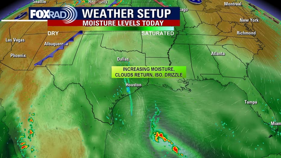 HOUSTON - There will be some small changes in the weather today with increasing clouds and a few possible drizzles. It will become slightly more humid as highs stay in the upper 80s.