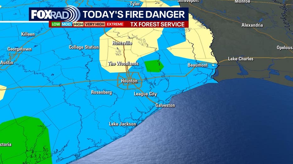 Dry vegetation and dry afternoon breezes have kept fire danger high, and burn bans remain active for much of Southeast Texas. The prolonged dry spell has pushed drought conditions deeper, with soils and grasslands extremely vulnerable to sparks.