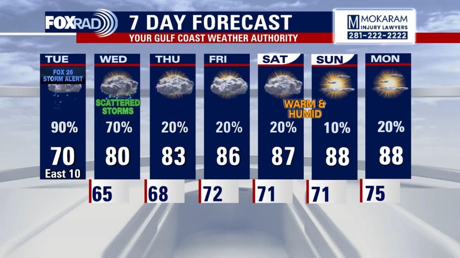 HOUSTON - There is a FOX 26 Storm Alert in place as much of the Houston-area will see heavy rain move across the area Tuesday.