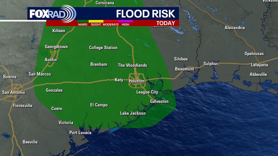 There is a FOX 26 Storm Alert in place for much of Tuesday as heavy rain moves across Southeast Texas. With periods of heavy downpours, it could lead to localized street flooding.