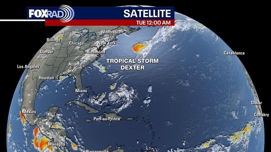 Tropical Storm Dexter has not become any stronger and continues to be a non-issue in the Atlantic. It will continue moving away from the East Coast and move into the North Atlantic away from land.