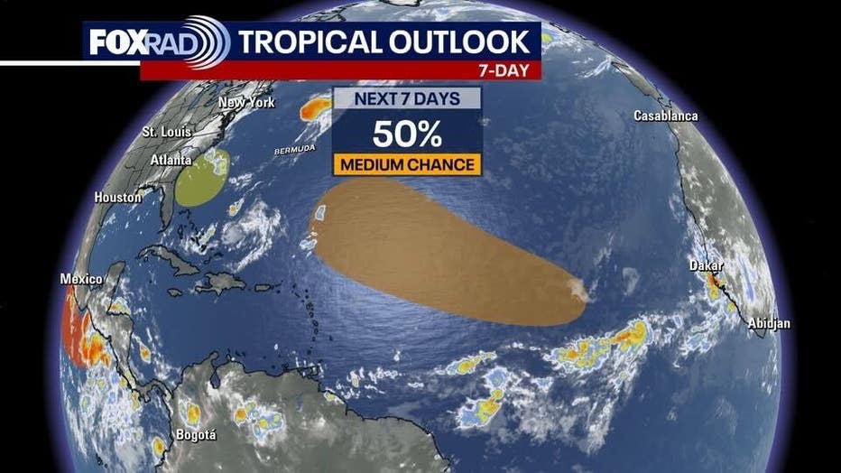 One other area near South Carolina has a chance of becoming a weak tropical system late this week, but it will not have any effects on Texas.