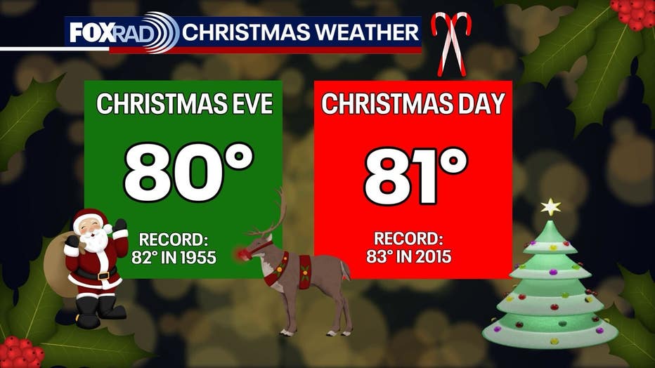 No significant fronts or widespread rain are expected to impact Christmas plans at this time, so the main issue to be morning fog and highs near 80.