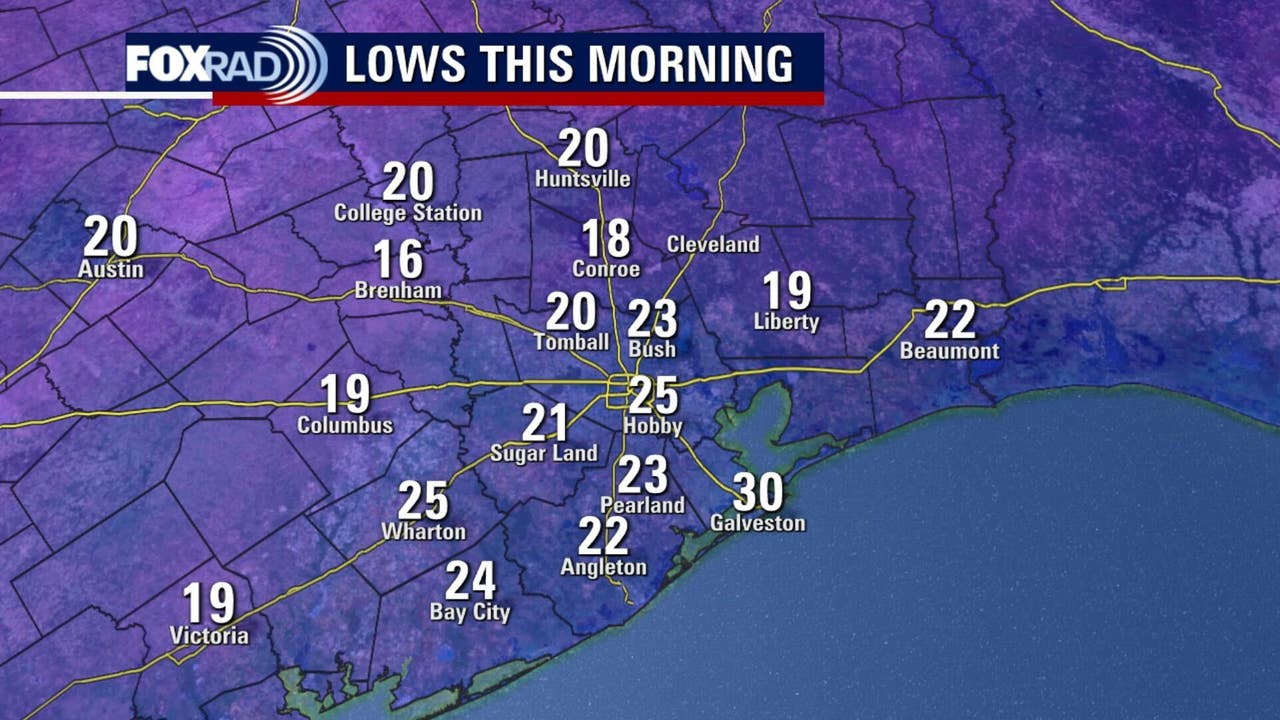 Houston remains locked in a wintry pattern today. Temps this morning dropped into the low 20s in most locations, but with very light winds.
