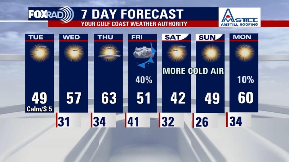 Despite the warming trend, light freezing conditions remain possible both Wednesday and early Thursday mornings in outlying areas. The warmest temperatures will be the warmest we'll feel for the next week.
