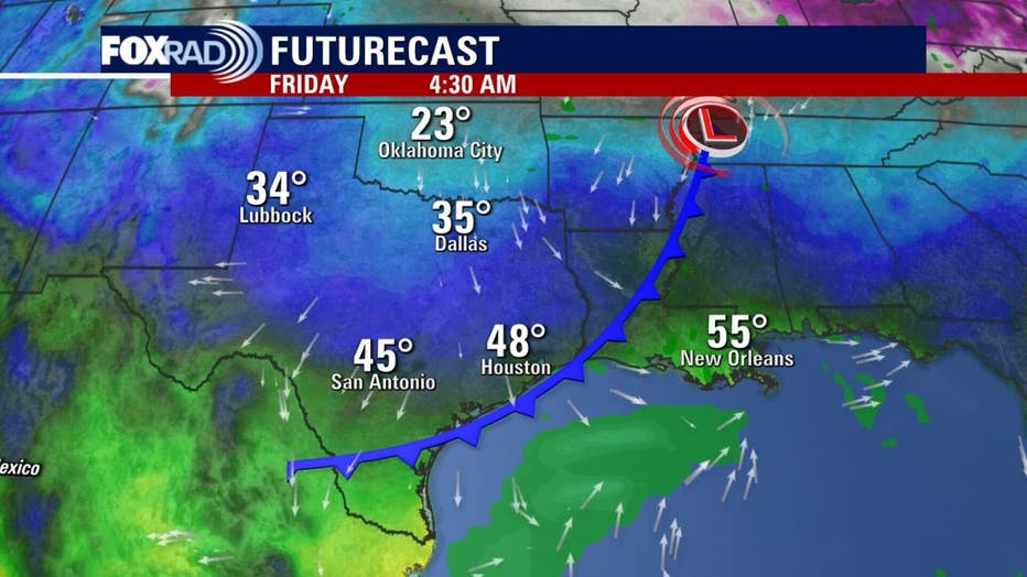 Another strong cold front is expected to move through late Friday, bringing a chance of rain and ushering in another shot of colder air. While the exact strength of the cold remains uncertain, temperatures will trend toward the 20s and 30s again over the weekend. For now, Saturday looks cold and windy with the coldest air on Sunday morning as lows could drop into the low 20s. The good news is that temps should moderate nicely after that.
