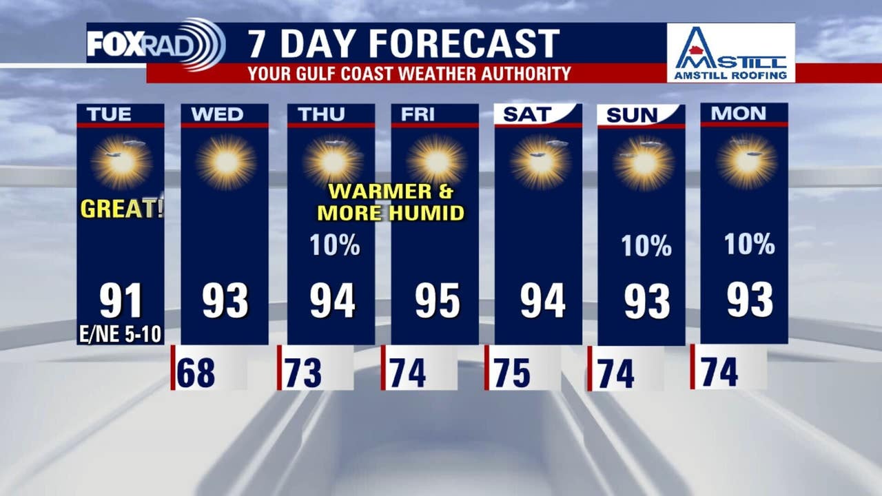 It's the coolest morning we've had in months with temps dropping to the 70s Tuesday morning. Don't get too comfortable as things will heat up once we get some sunshine and highs reach the 90s.