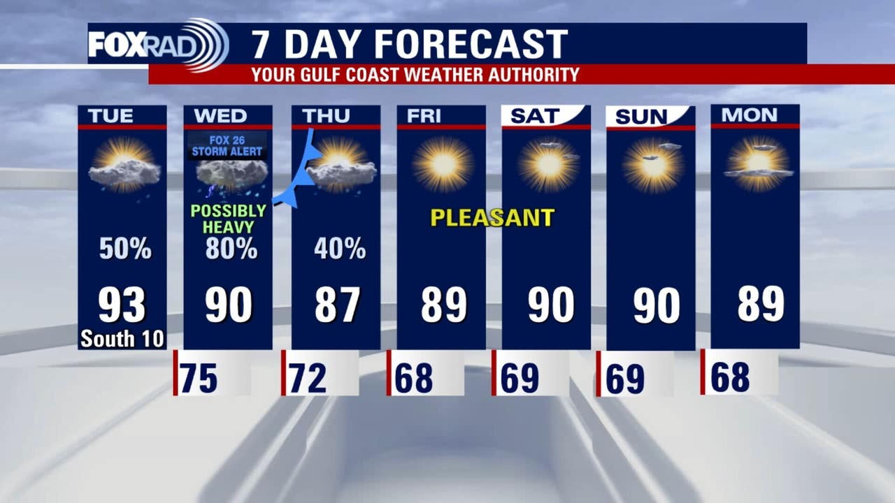 Due to the chance for heavy rain, Wednesday is a Fox 26 Storm Alert day.