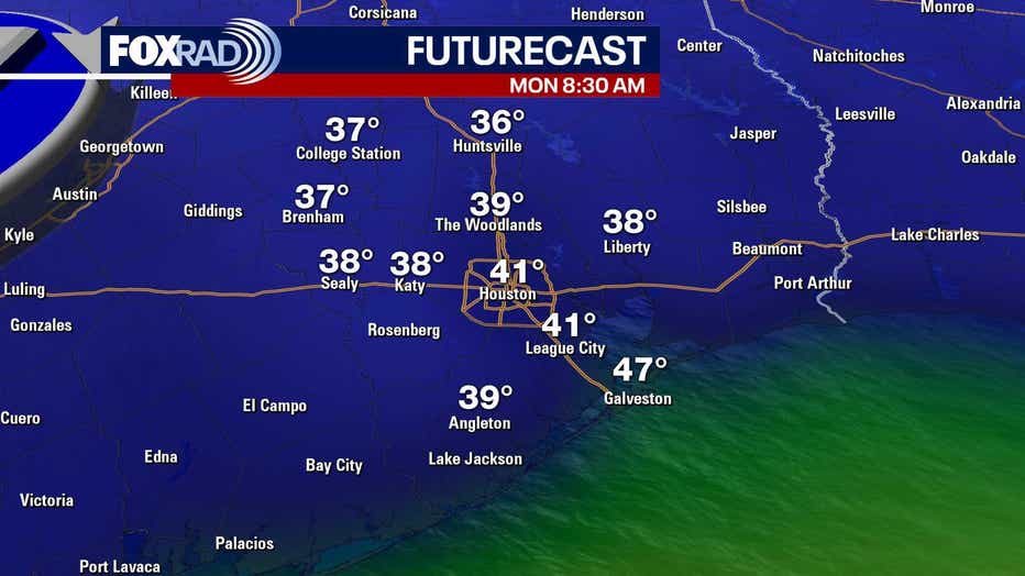Sunday will be breezy and much cooler with highs in the low 70s. By Monday and Tuesday morning, low temperatures behind the front are forecast to drop into the low 40s in Houston, with readings potentially reaching the 30s north of the city. This sets up the coldest conditions the area has seen since February. The taste of winter will be brief with above normal temperatures returning by Wednesday.
