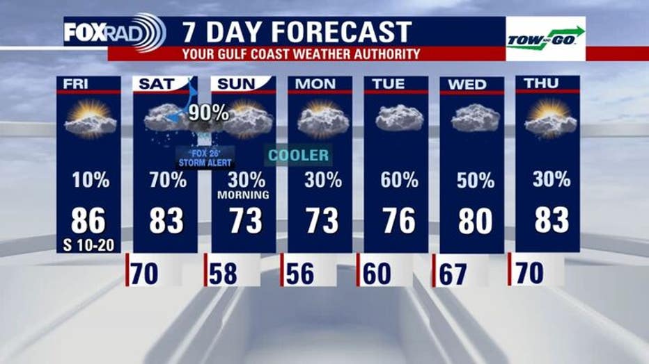 HOUSTON - A cold front moves in this weekend, bringing increasing rain chances Saturday with the highest likelihood for more widespread storms Saturday night into early Sunday.