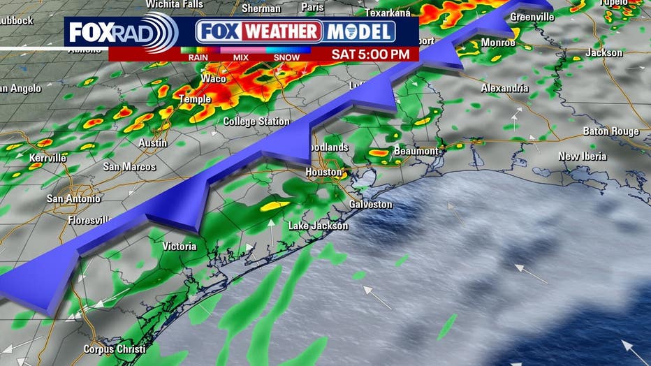 A cold front moves in this weekend, bringing a better chance for scattered showers and thunderstorms. The highest likelihood for more widespread rain currently looks to be on Saturday afternoon and evening. A few stronger storms will be possible as the front approaches. Heavy rain with the chance for isolated street flooding is possible north of I-10.
