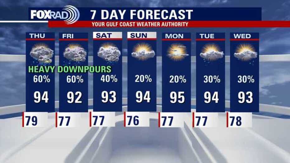 The higher shower and cloud coverage could drop temperatures slightly, but overall the heat continues.