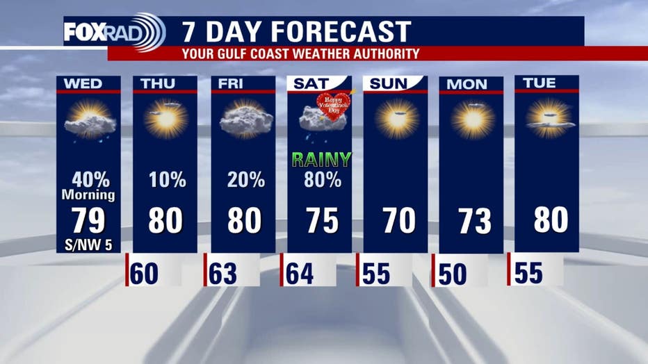 We could see some isolated rain showers, however nothing too heavy. Temperatures will be mild with highs in the 70s. The chances for rain increases going into the weekend for Valentine's Day and Mardi Gras.