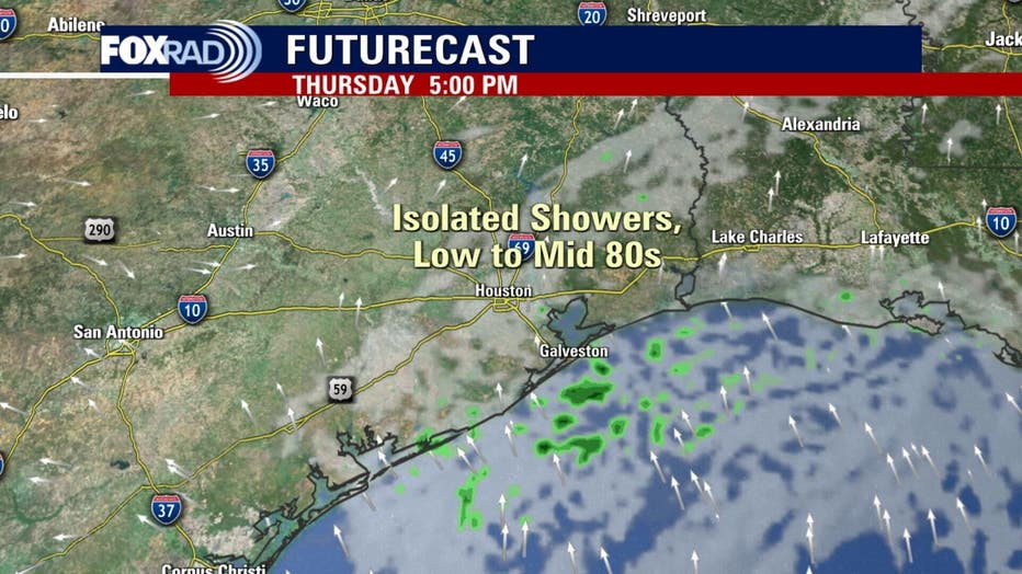 A cold front moves through the area on Saturday, bringing our best chance for rain this week. Expect scattered showers and perhaps a few isolated thunderstorms as the boundary pushes toward the coast.