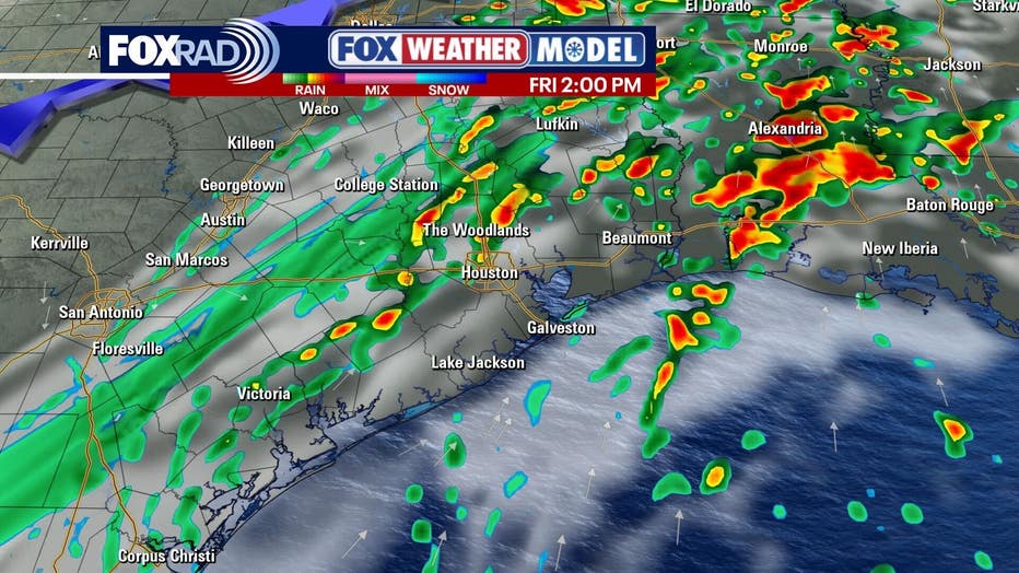 Behind Friday’s system, a strong push of colder air moves in for the Chevron Houston Marathon weekend. Temperatures drop sharply with highs falling back into the upper 50s and low 60s and noticeably colder mornings near 40. This colder pattern should persist into next week, with brisk mornings and pleasant afternoons.