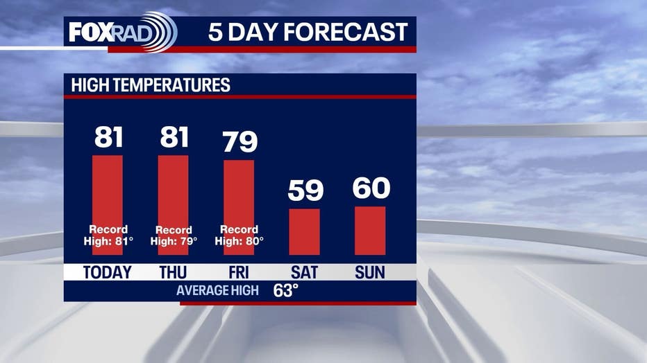 Another day of a dense fog advisory in effect until 10 a.m. but once it lets up expect some sun and highs near 80. A colder pattern is going to kick in for the weekend.