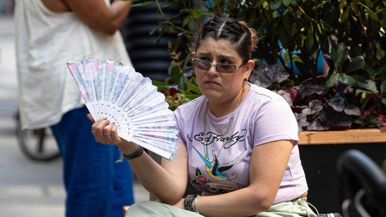 A woman fans herself during a heatwave in Dumbo, Brooklyn, New York, Thursday, July 27, 2023. (Photo by Shawn Inglima for NY Daily News via Getty Images)