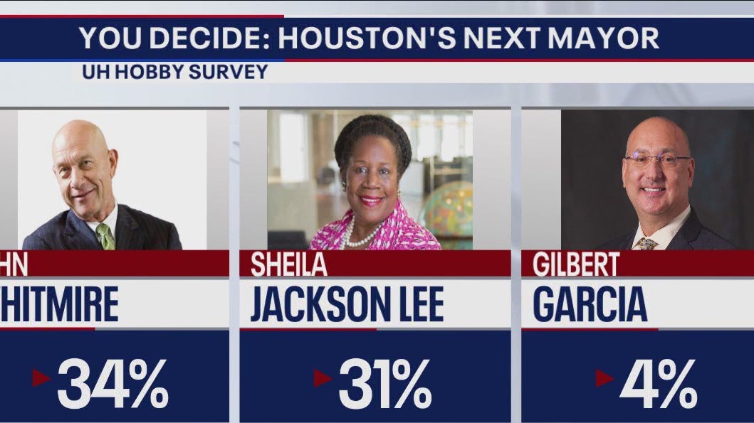 With just 23 days until Houston's mayoral election, a new poll from the University of Houston's Hobby School reveals that State Senator John Whitmire and Congresswoman Sheila Jackson Lee are leading the race, setting the stage for a December runoff.